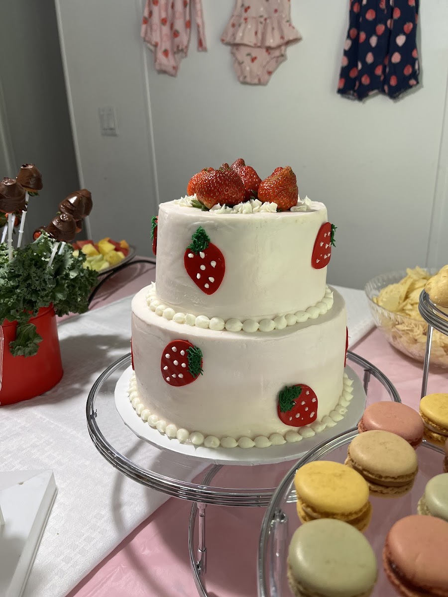 Yet again, another perfect cake delivered. Baby shower cake - I had a bunch of pictures that I used to draw inspiration from and they were able to combine all the little things into one cake. Delicious, fluffy, moist and not soggy Chantilly strawberry cake!